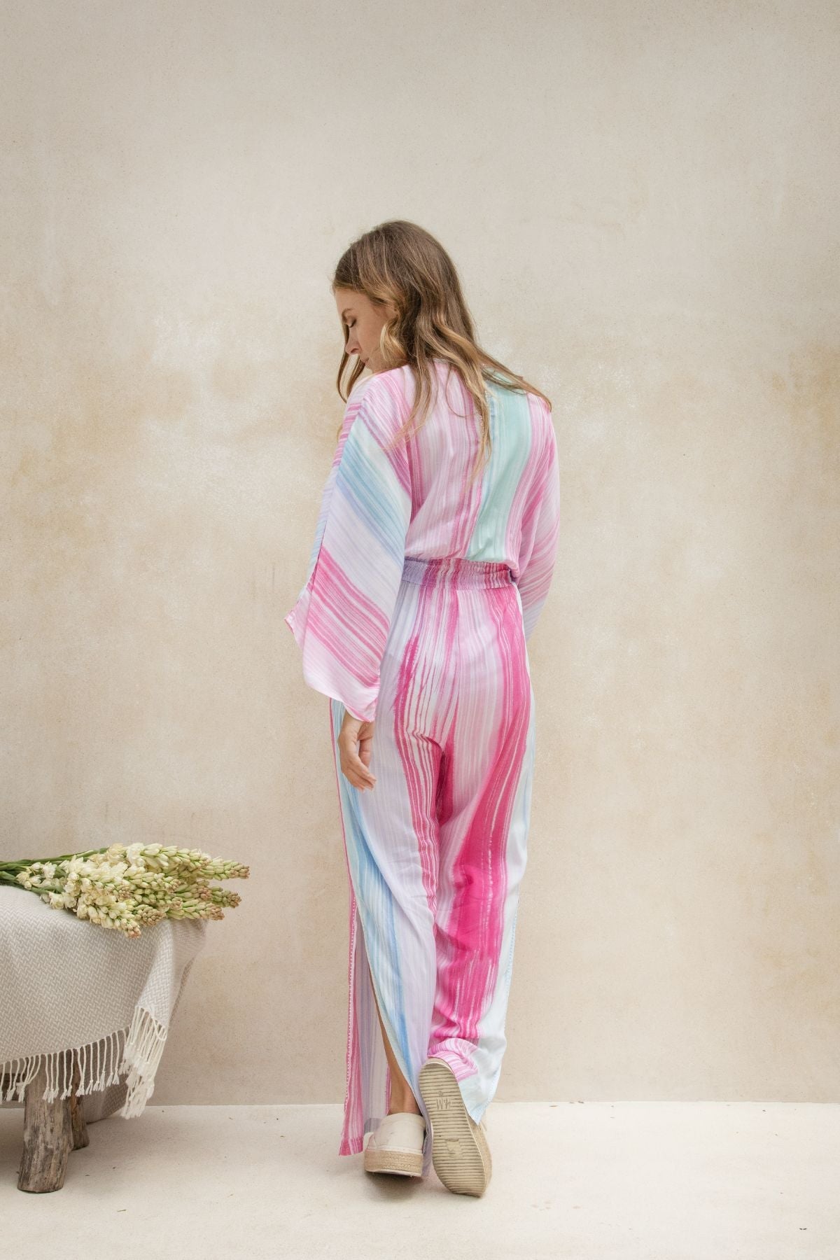Introducing our Adelaide Long Jumpsuit, a chic and versatile addition to your bohemian summer wardrobe. Crafted for the free-spirited goddesses of Ibiza, this jumpsuit exudes effortless elegance and timeless style. Made from luxurious rayon voile, it offers a delicate softness and lightweight feel, perfect for warm summer days and balmy nights. Available in Pink and Turquoise.