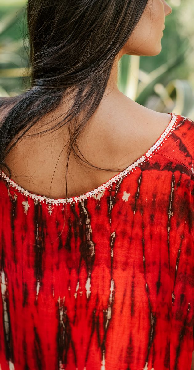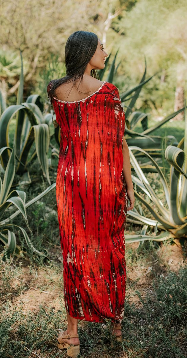 Un autre article favori de notre collection signature batik est la tunique longue Alma, facile à porter. Un tissu long et fluide avec une large encolure embellie pour basculer nonchalamment sur une épaule. Elle deviendra rapidement votre caftan de plage préféré.