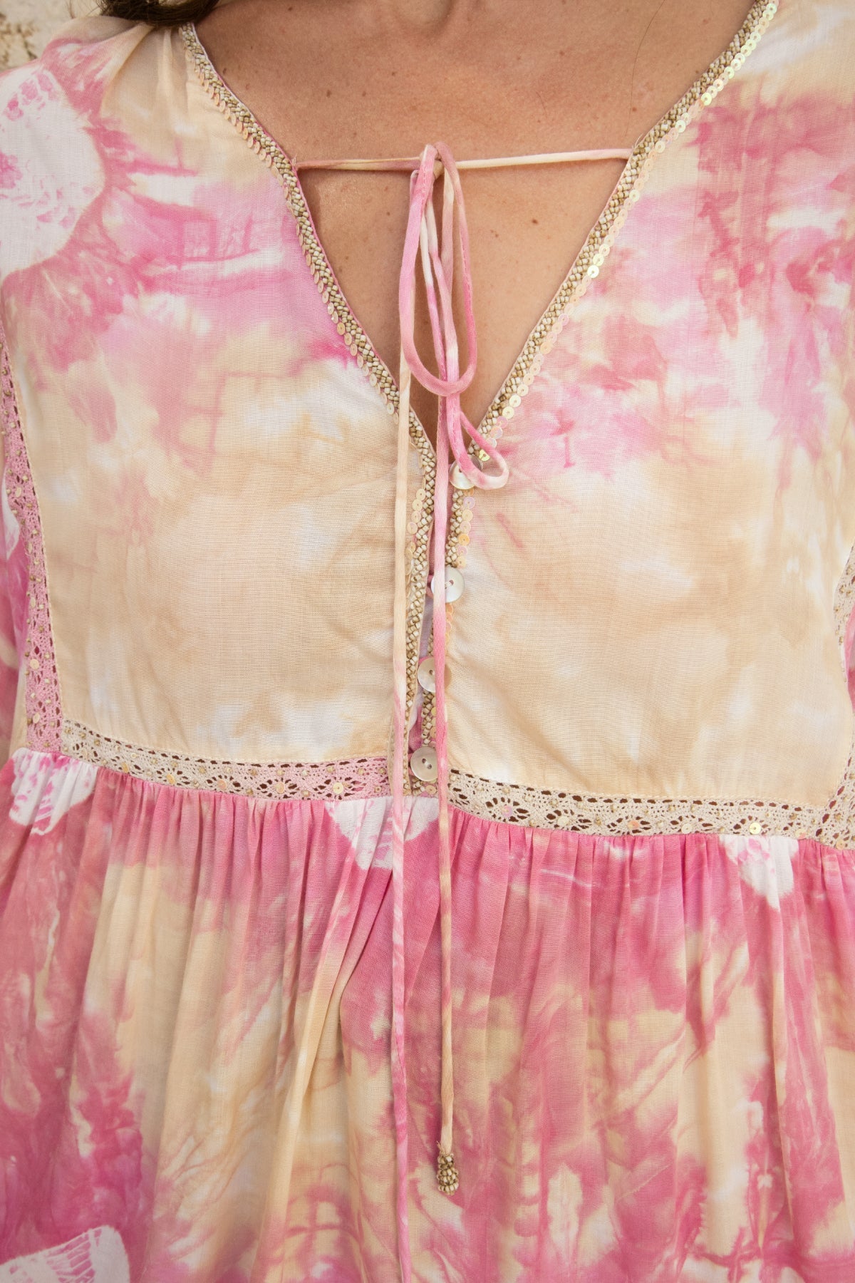 Made from luxurious rayon voile, the Alouette Short Tunic drapes delicately against your skin, offering unparalleled comfort and softness. Its playful bubble batik print adds a burst of color and personality, perfect for leisurely strolls along the beach or lounging by the waves. Available in Beige, Green and Pink.