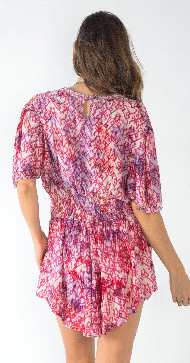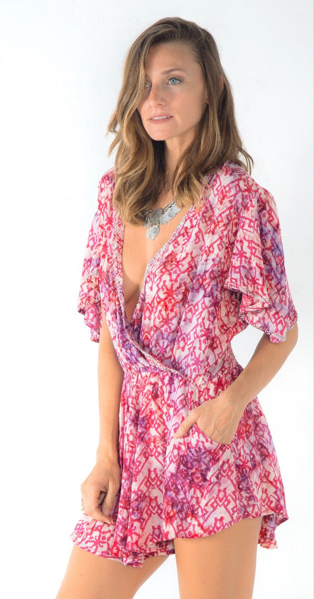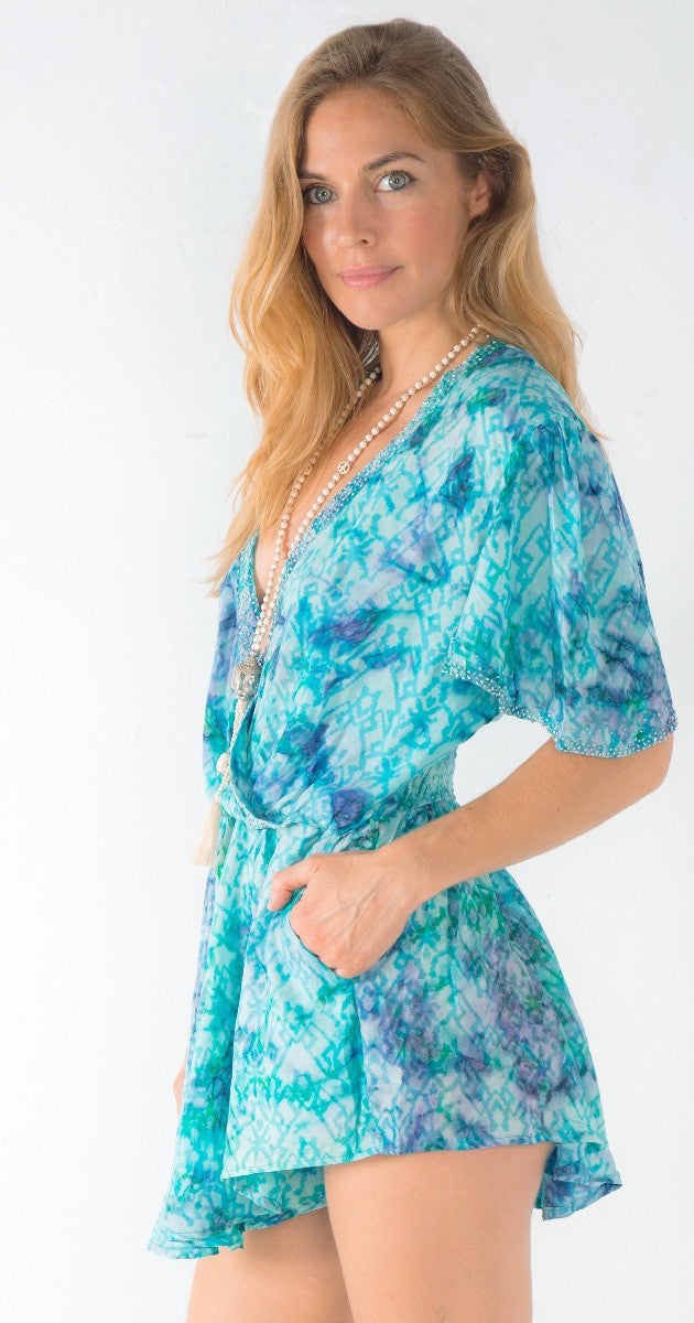 Featuring a deep V neck cut that is hand embellished and elastic waist that ensures the best fit, you can style this piece to your hearts desire. Choose your favourite between Blue and Coral tones