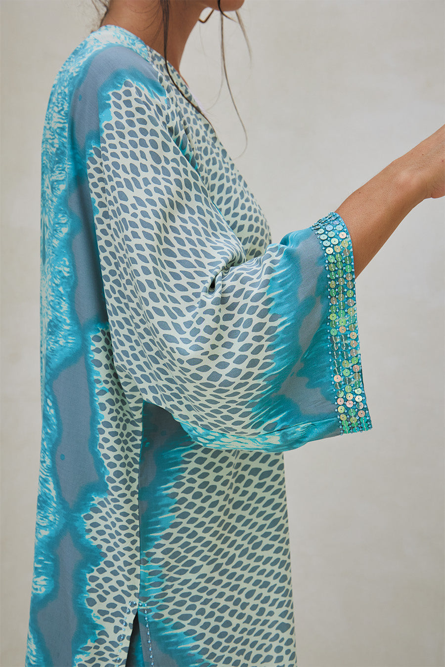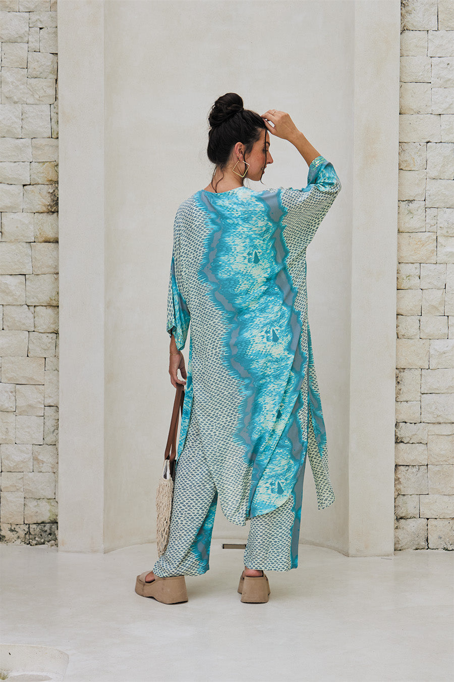 • Long, flowy cut with wide sleeves