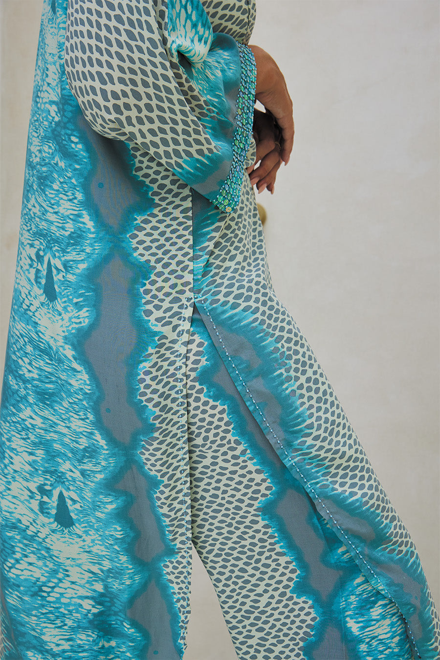 • Snake-inspired print in blue and grey