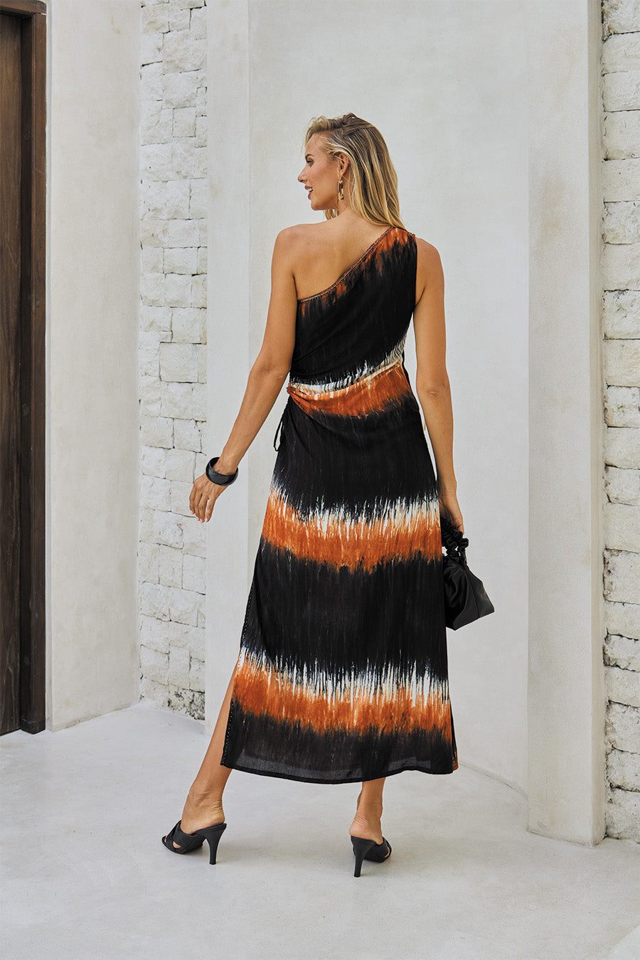 The Evengeline Long Dress in Color Burst Tie Dye is bold, radiant and sensual. With a deep V-neckline, open back with criss-cross straps and hand-beaded detail, it’s made to move with confidence and grace.