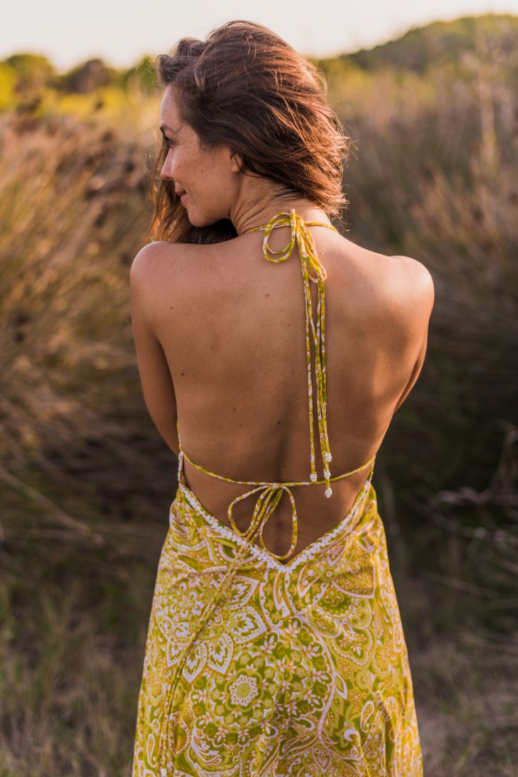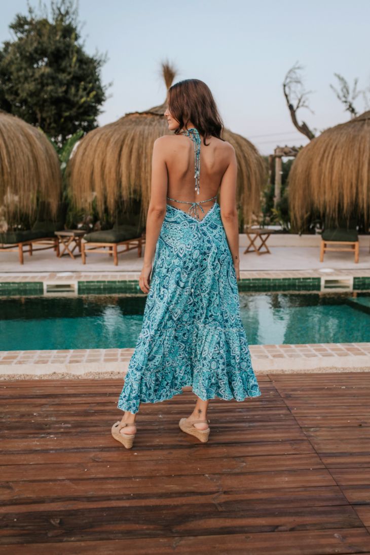 Le magnifique imprimé Abaresque teint à la main, associé au perlage incrusté à la main, offre une définition étonnante à notre robe longue Love. Disponible en deux superbes tons de vert ou de bleu, elle est fabriquée à partir de la rayonne la plus douce et la plus légère, qui caresse votre corps lorsque vous bougez.