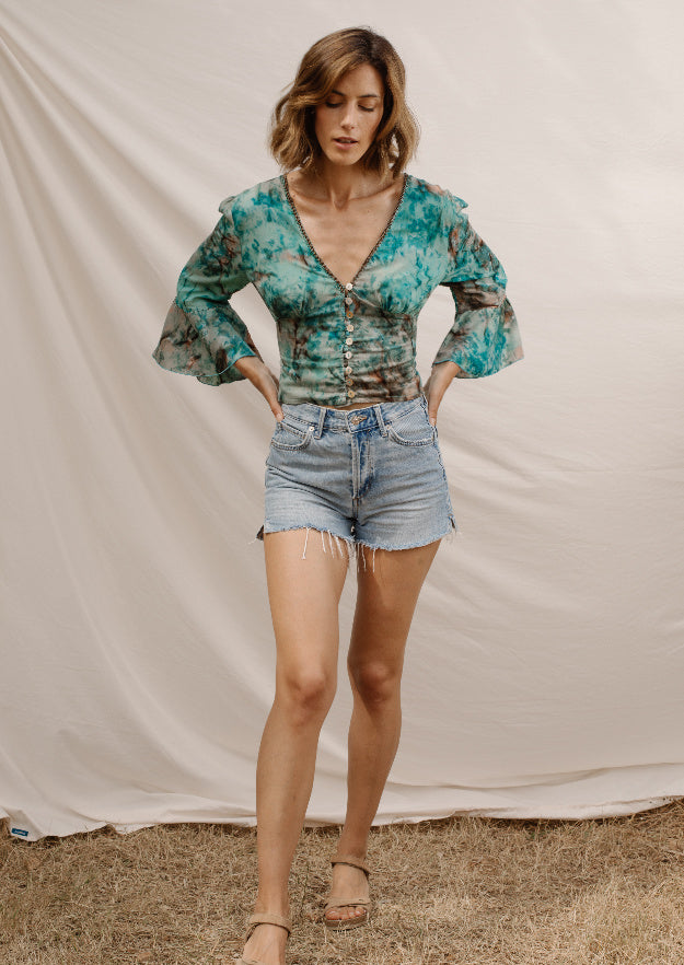 A perfect blend of bohemian style and contemporary fashion. This top is crafted with care from soft and lightweight rayon voile, offering a luxurious and comfortable feel against your skin.