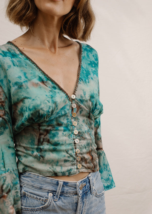 Designed to elevate your casual outfits with its charm. The Geode Tie Dye pattern adds a touch of artistic flair, showcasing a mesmerizing blend of colors and patterns that make each top unique and captivating. Embrace the beauty of nature with this tie-dye effect, reminiscent of geode formations.
