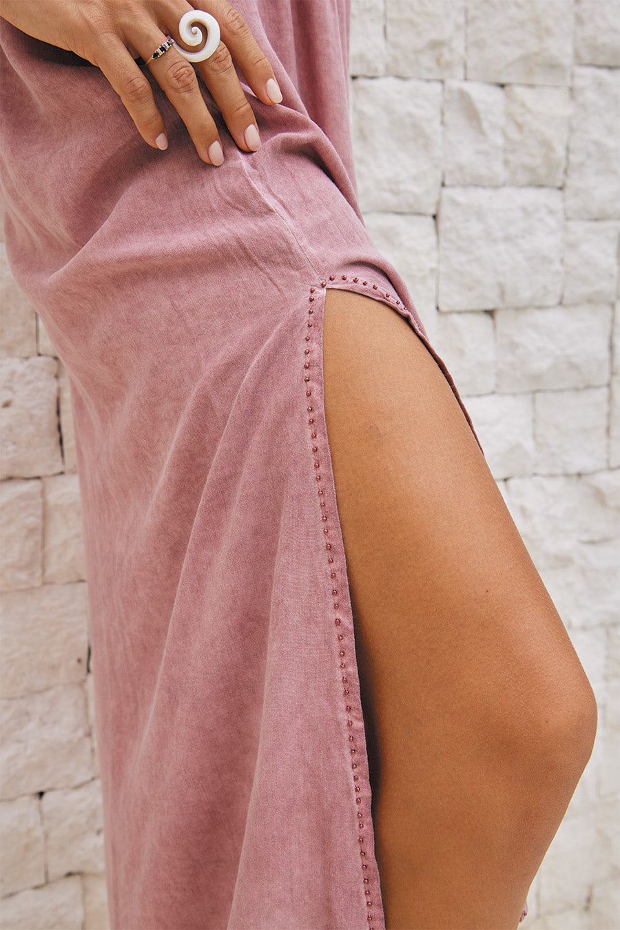The Meadow Long Dress blends artisanal charm and effortless elegance. Crafted from pigment-dyed Voile Rayon, it features delicate hand-embroidered lace along the neckline and adjustable thin straps. A soft side slit adds a feminine touch to its relaxed silhouette. Available in earthy tones: Green, Gold, and Terracotta.