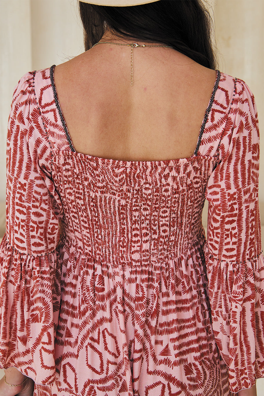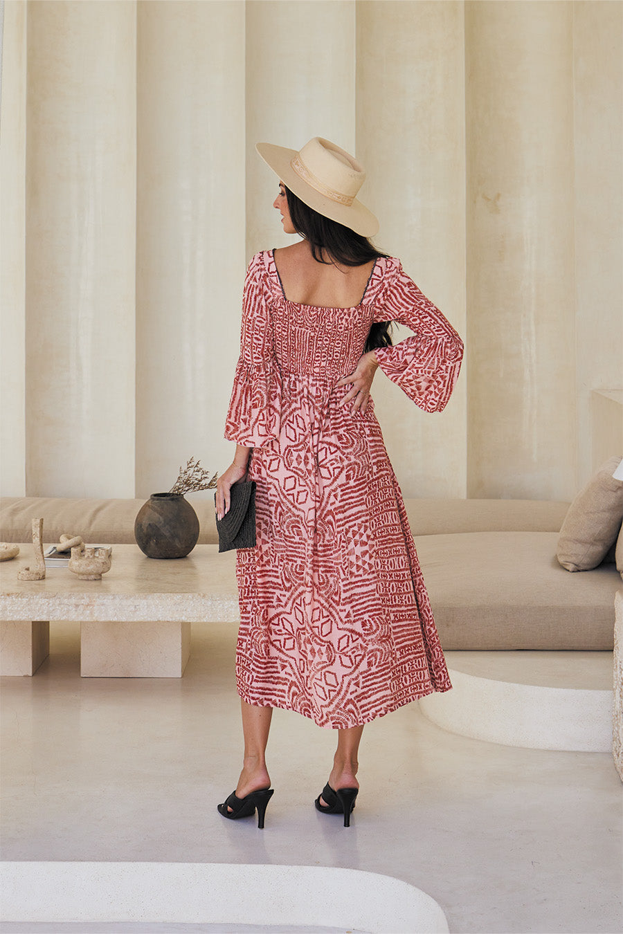 The Nova Midi Dress brings freedom, balance and beauty to everyday wear. With a flattering V neckline, midi cut and Ethnic Fusion print, it's made to stand out effortlessly.