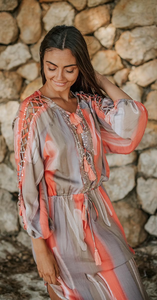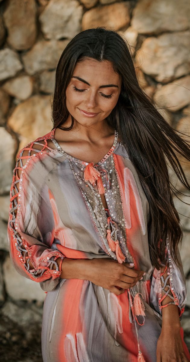 Habillez-vous avec style dans notre tunique Nuna. Cette robe respire l'élégance et la classe. Fabriquée dans le plus doux des tissus en rayonne, elle est peinte à la main avec un motif batik original HCI.