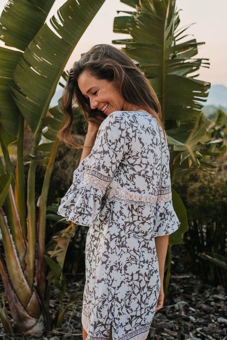 Avec des manches d'ange gracieuses et de magnifiques perles embellies à la main le long de la poitrine offrant une sophistication subtile. Choisissez parmi deux magnifiques tons de bleu ou de gris, dans notre superbe imprimé Soft Flowers.
