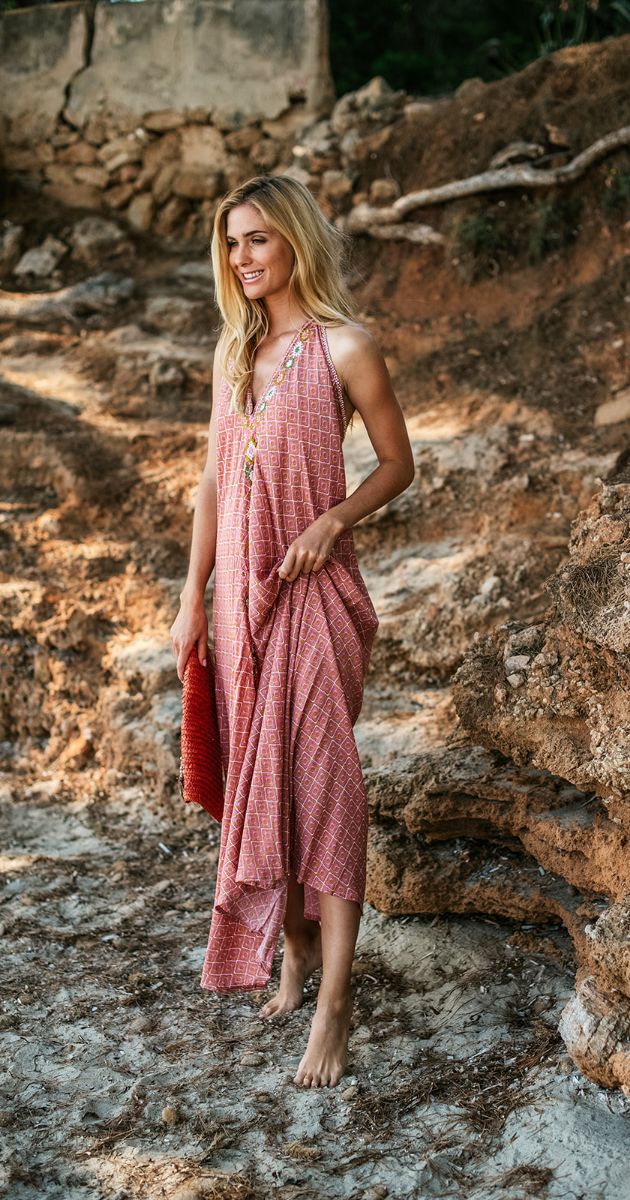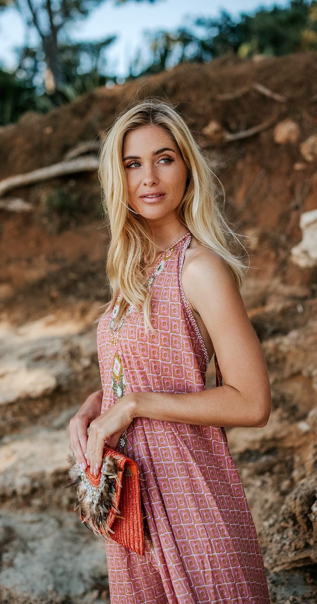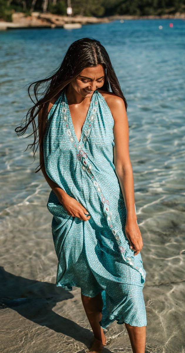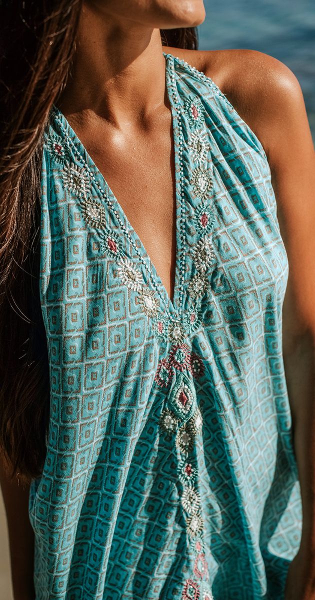 It is made from super soft rayon, perfect for showing off your tan. A richly embroidered V-shaped décolleté and a gorgeous open back that runs down in a point towards the lower back makes this tunic a very elegant addition to your summer wardrobe. Paired with your favourite heels or comfy wedges you will be ready for the holiday of your dreams.