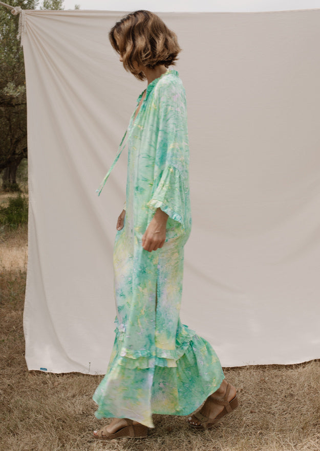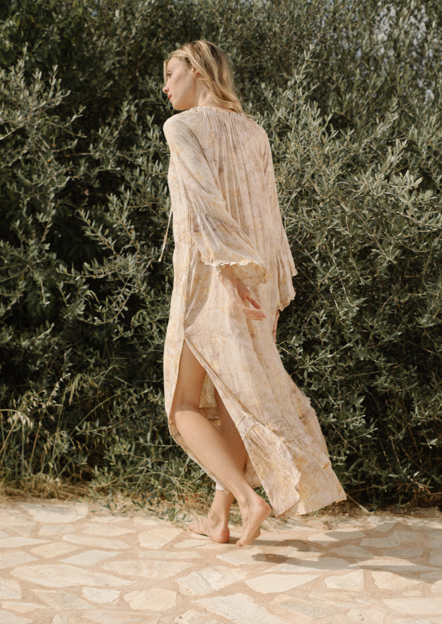 Crafted with meticulous attention to detail, this Kaftan embraces the bohemian aesthetic with its flowing silhouette and effortless charm. The wide opening at the leg creates a sense of movement and adds a touch of allure, allowing you to showcase a glimpse of skin as you walk or dance.