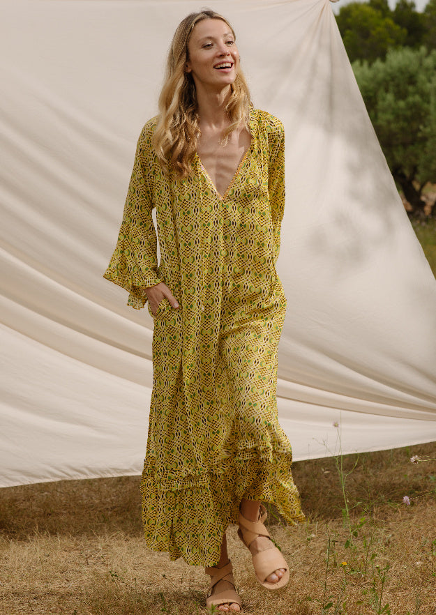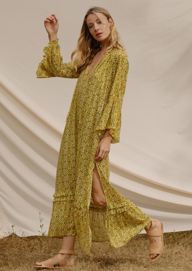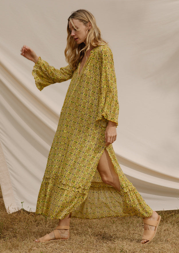 Crafted with meticulous attention to detail, this Kaftan embraces the bohemian aesthetic with its flowing silhouette and effortless charm. The wide opening at the leg creates a sense of movement and adds a touch of allure, allowing you to showcase a glimpse of skin as you walk or dance.