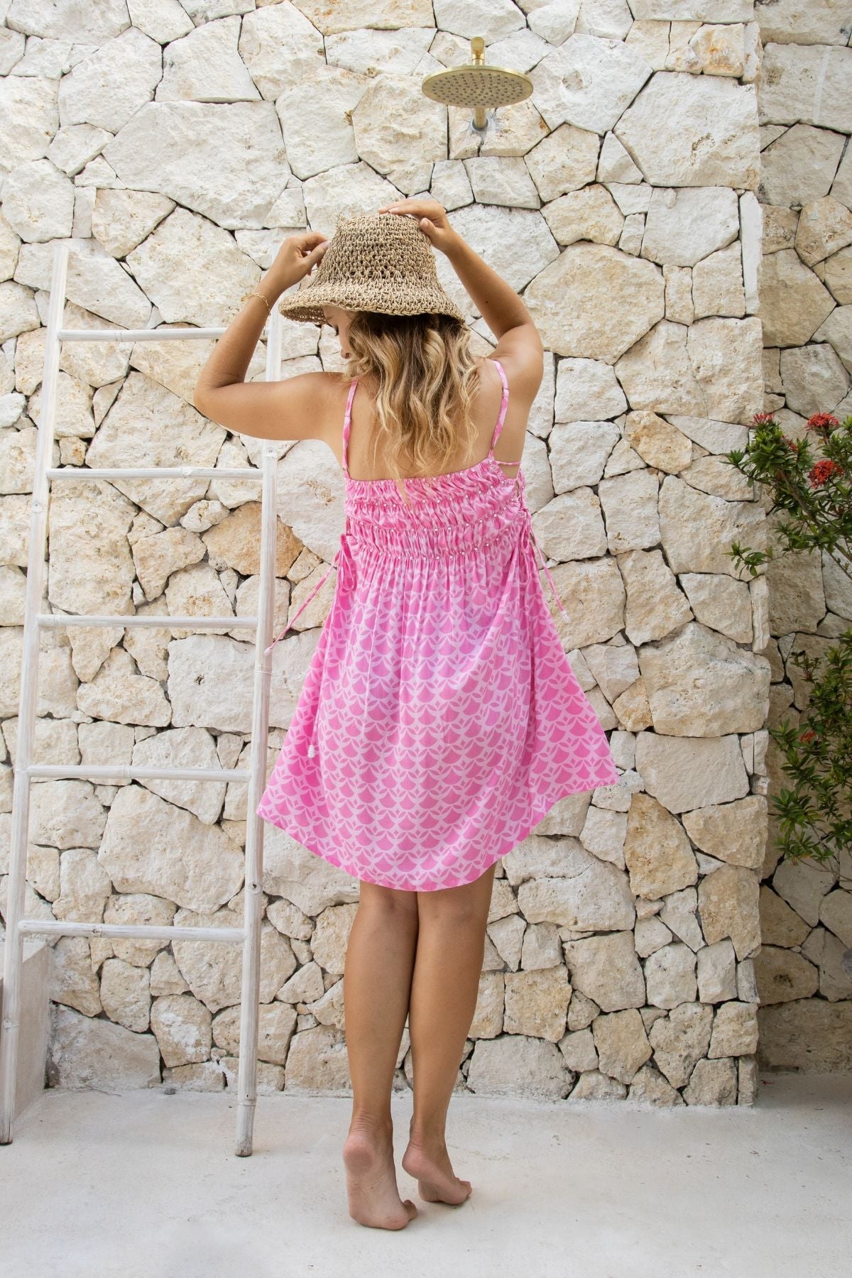 Introducing our Sephora Sundress, a quintessential piece for the free-spirited souls embracing the boho chic vibe. Crafted from luxurious rayon voile, this sundress embodies the essence of Ibiza's laid-back elegance, offering a delicate softness and graceful drape. Its effortless silhouette and lightweight fabric make it the perfect companion for sun-drenched days and balmy nights on the island. Available in Aqua, Beige and Pink.