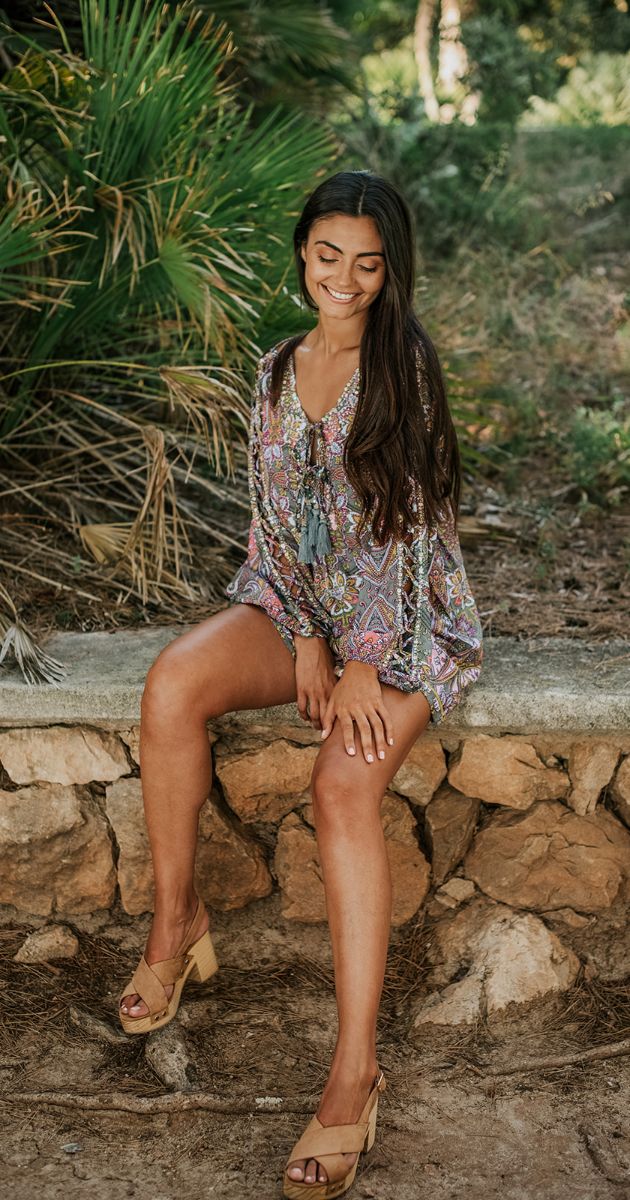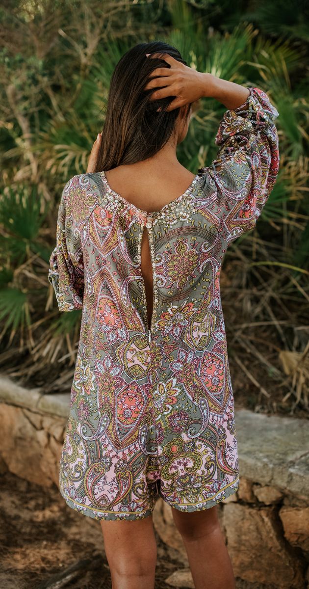 Sortez avec style dans notre combinaison courte Caly Paisley. Cette combinaison respire l'élégance et la classe. Fabriquée dans le plus doux des tissus en rayonne, elle est ornée d'un magnifique imprimé ethnique décliné en deux couleurs différentes.