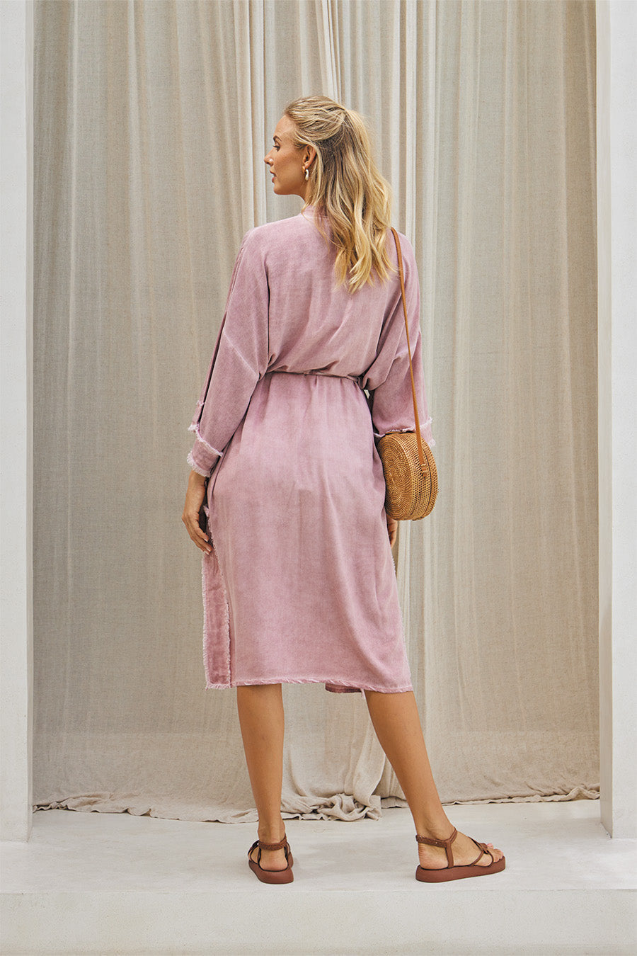 The Petal Long Kimono flows with presence. With soft fringe detailing and a pigment-dyed finish, it’s made to layer, move and stand out. A true bohemian staple.