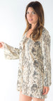 Sexy Akhtar tunique is one of those outfits that work for any occasion, like the LBT but way more fun. Hand-beaded around the neck, it has tassled ties around the neck and true boho bell sleeves. Choose your favourite between blue and beige tones