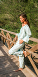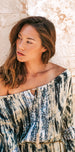 Stunning lace inset Dunia jumpsuit has beautiful bell sleeves and tasseled ties around the neck to allow you to reveal as much or as little as you wish. With a flattering fit in a beautiful hand-dyed batik, it is the perfect summer's eve companion. Choose between Emerald Green and Turquoise or Back and beige tone.