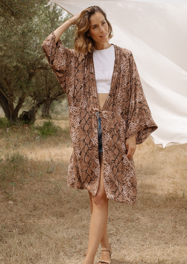 You can wear the Charo Kimono with short clothing, for example, bermuda shorts, so that it will highlight your figure.