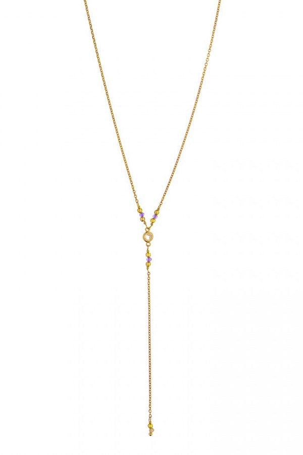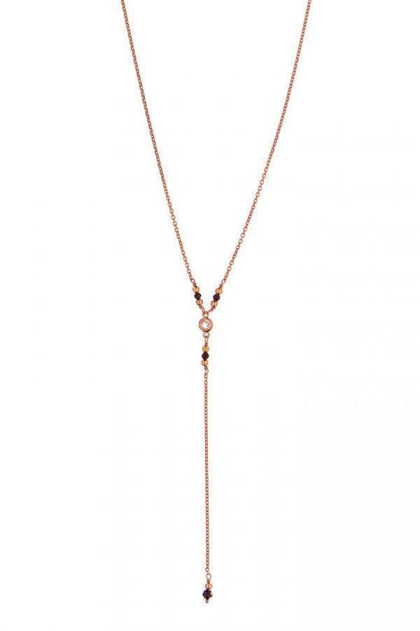 As part of the Mystic line from ALISIA comes this elegant and fine 925 Silver pendant necklace, galvanised in 18k gold or rosé gold. It's a perfect piece to wear at a stylish dinner party or a visit to the theatre. It has little semi-precious stones like Granite, Labradorite and Sodalite around the centrepiece of the chain, which has a beautiful zirconia stone.