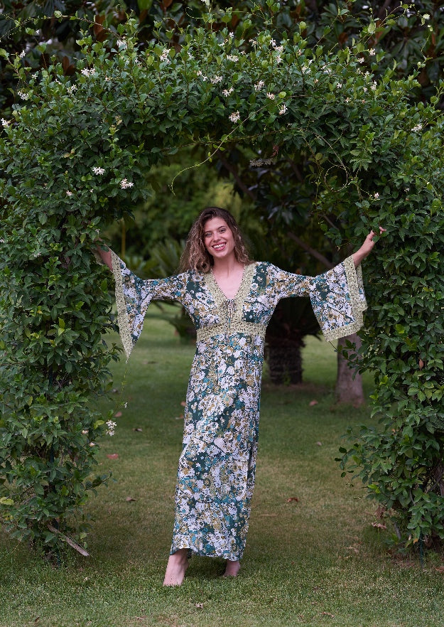 Choose your favourite between Green or Grey shades of our artisan Tanit Tie Dye or Vintage inspired Gertrudis print in Black and Green. Also available as knee length Cora Tunic Dress.