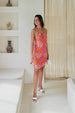 The Elara Short Dress is light, playful and full of flow. With a flattering V-neckline, flutter sleeves and a ruffled skirt, it moves with ease and confidence. The kaleidoscopic print brings a vibrant, joyful energy to every look.