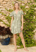 Feel amazing in the Poppy's short summer dress. With loose skirt and sleeves, which gives you freshness and freedom. With V-shaped crossover neck, belt with bow at the waist and an embroidery on one side that comes from the neck.