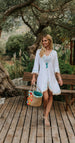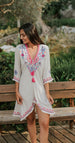 Gypsy cool meets Ibiza chic, the Ivy Tunique will be the hero of your holiday wardrobe. Featuring beautiful intricate embroidery around the neck, shoulders, and along the cross folded front, down to the sleeves. The stunning details of this tunique really are special and make it stand out from the rest.It will look great in any situation, whether you're gracing the lower deck of a luxury yacht, at a music festival, or at your favorite Ibiza beach club.