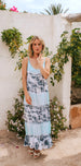 Another favorite is this classic Alisa Maxi Dress, with fine hand beading on the front, back, and shoulders. The batik is created in a rather special way and it really gives the dress that extra shine! it comes in a blue/grey and an apricot/ grey.