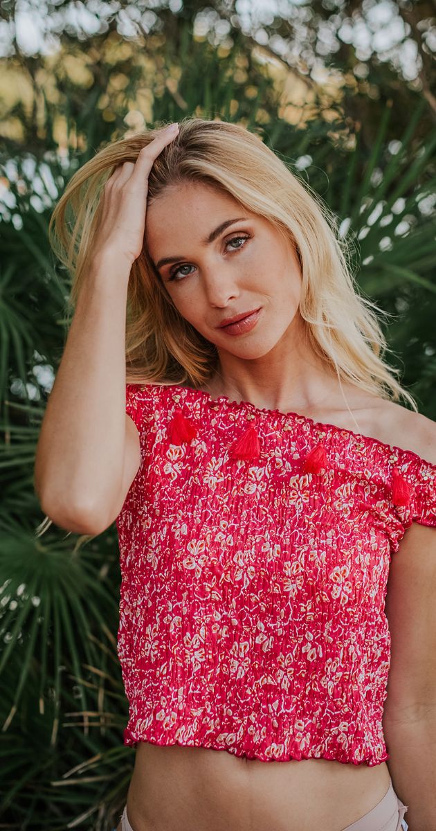 Adorned with sweet little tassels all around, strapless, and with a perfect elastic fit, this top will quickly become one of your summer favorites.