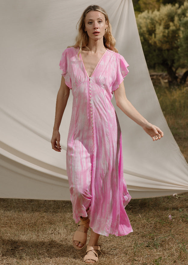 The Olive Dress is made for those who appreciate the beauty of simplicity and effortless style. Crafted from a very light and airy fabric, this garment offers a delightful sensation against your skin, ensuring you stay cool and comfortable even on the hottest summer days. The button-front detail adds a touch of sophistication.